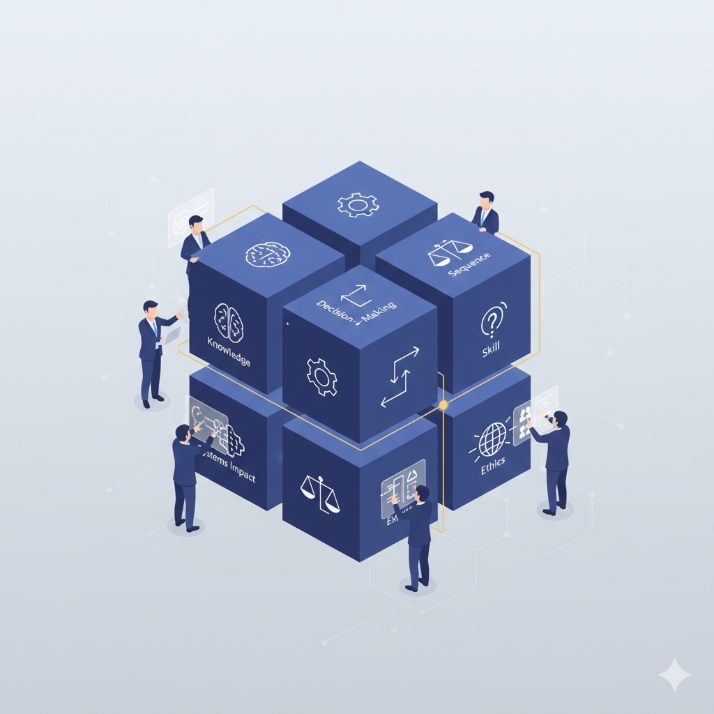 Systems-Thinking Framework. Rubix is our proprietary framework that teaches students that no skill stands alone. We align six critical dimensions of practice: Knowledge, Skill, Decision-Making, Sequence, Ethics, and Systems Impact.